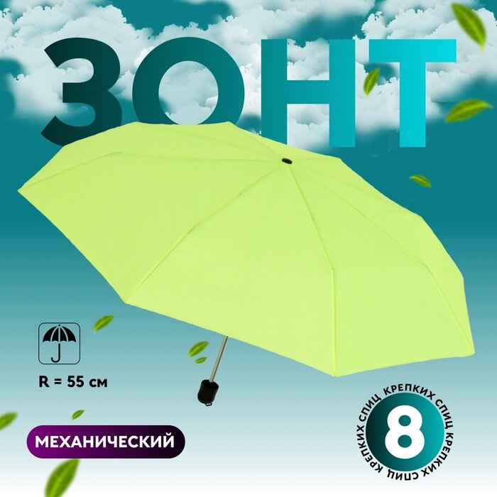 Зонт механический "Однотонный", 3 сложения, 8 спиц, радиус 48 см, цвет