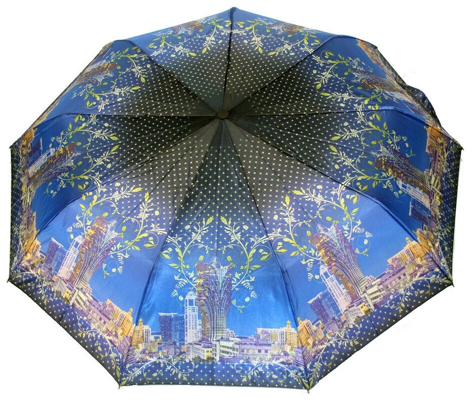 Зонт "Три Слона" женский №310-5, купол D=103 см, 10 спиц, суперавтомат бежево-черный