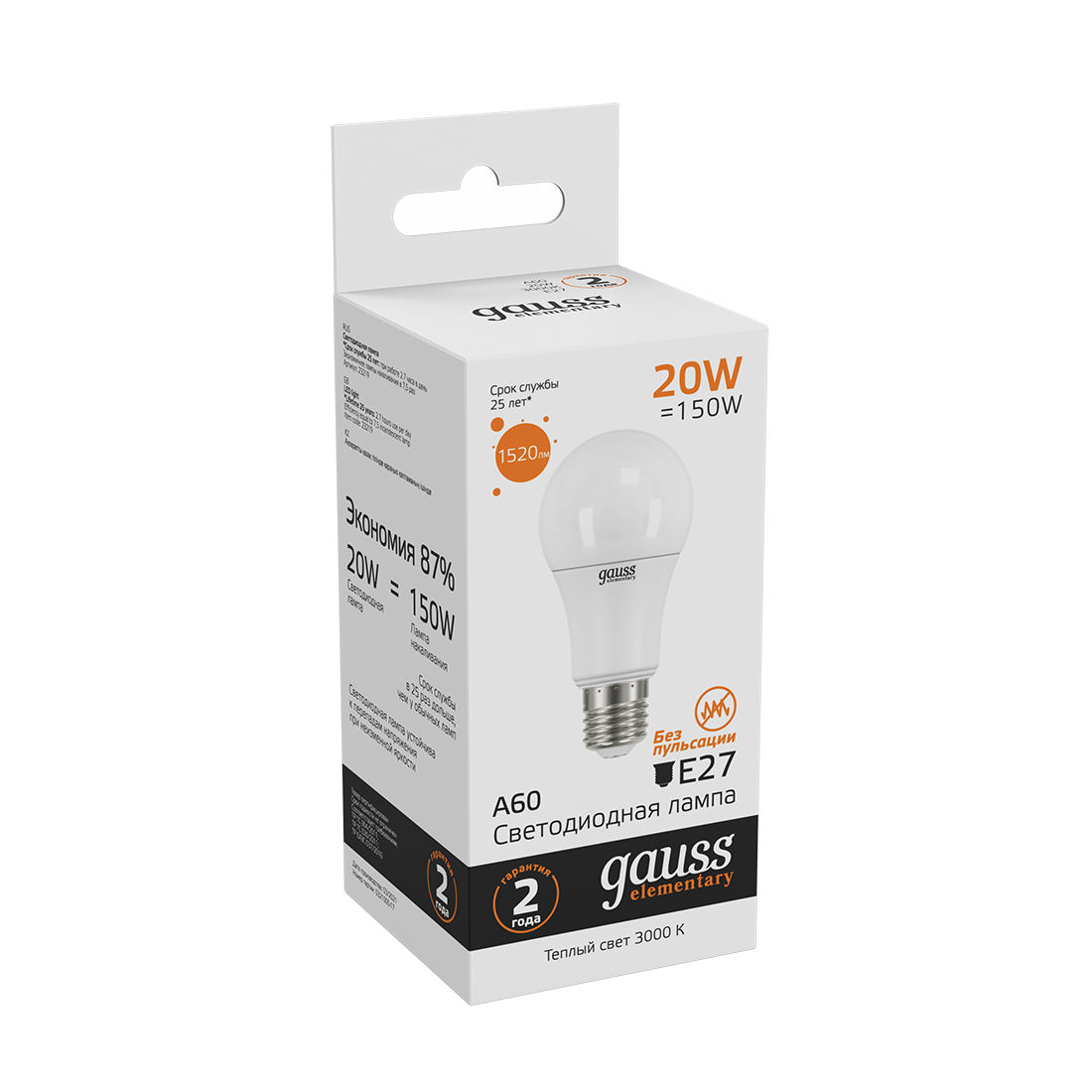 СохранитьЛампочка светодиодная Gauss Elementary 20В эквивалент 150w E27 3000К 23219 (комплект из 5 шт.) интересное: