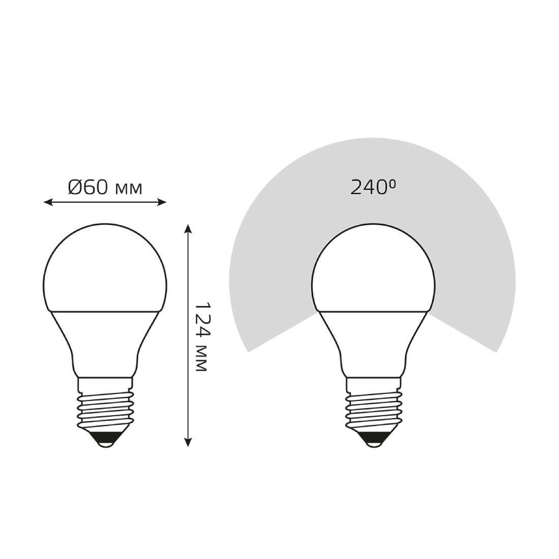 (14 шт.) Светодиодная лампочка Gauss А60, груша, мощность 20 Вт, напряжение питания 180-240 Вт, цветовая температура 4100 K, нейтральный белый свет, цоколь E27, размер 60х124 мм