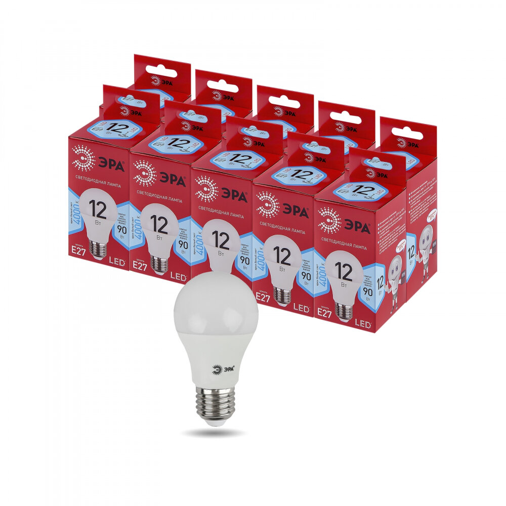 Купить Набор светодиодных лампочек ЭРА LED A60-12W-840-E27 R 4000K груша 12 Вт 10 штук