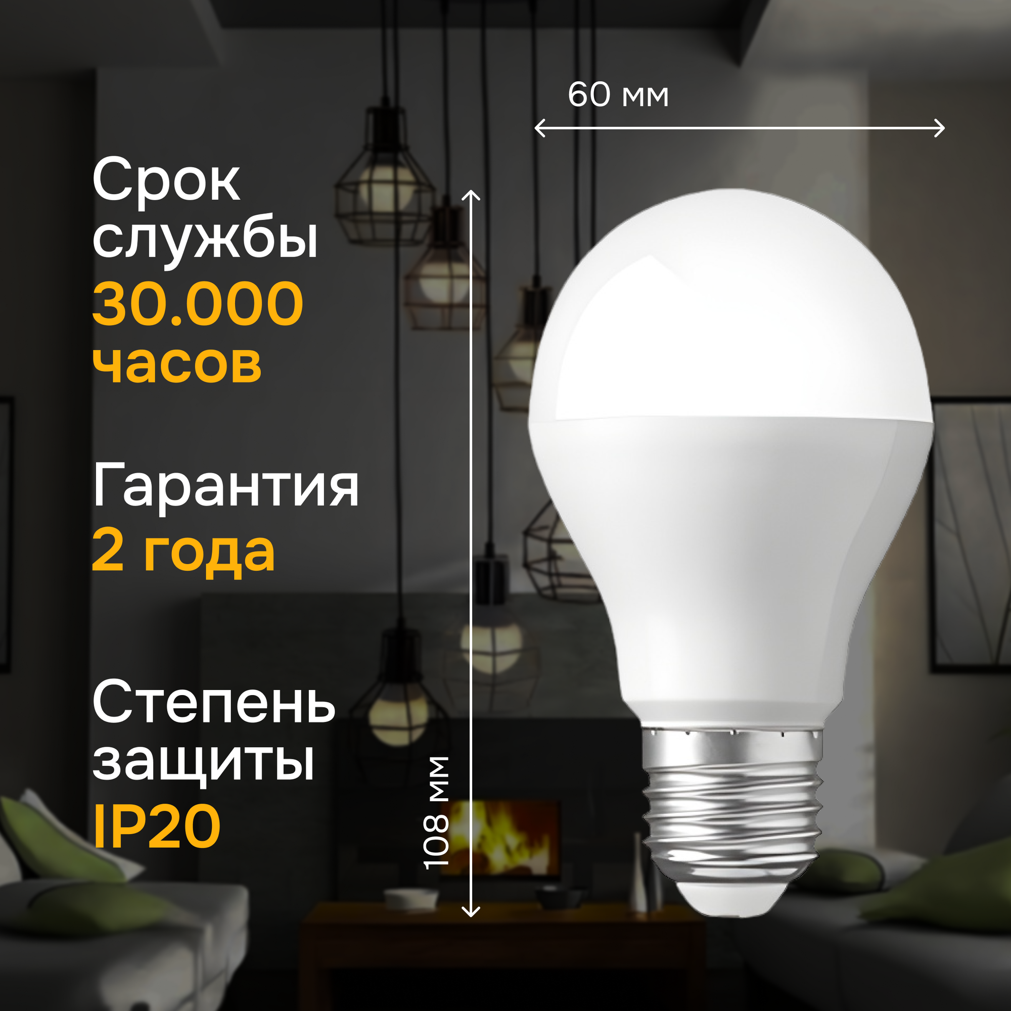 Набор лампа лампочка светодиодная A60 15.5 Вт Цоколь E27, Яркость 1473 Лм, 2700 K теплое свечение, в комплекте 3 штуки