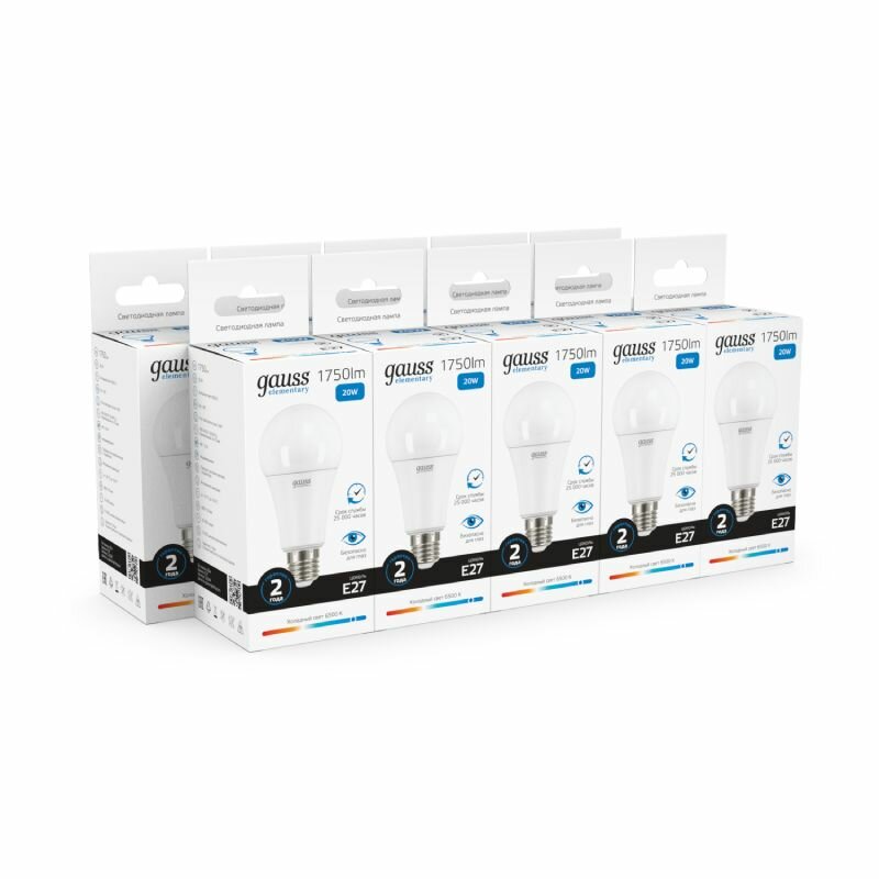 Купить Лампа светодиодная Gauss Elementary 20Вт, 1750Лм, E27, A60, 6500K