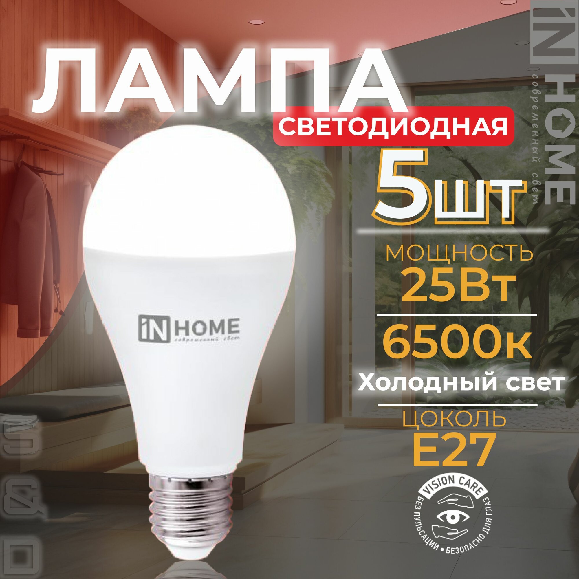 Купить Лампочка светодиодная е27 5 шт 25Вт 230В 6500К 2380Лм IN HOME