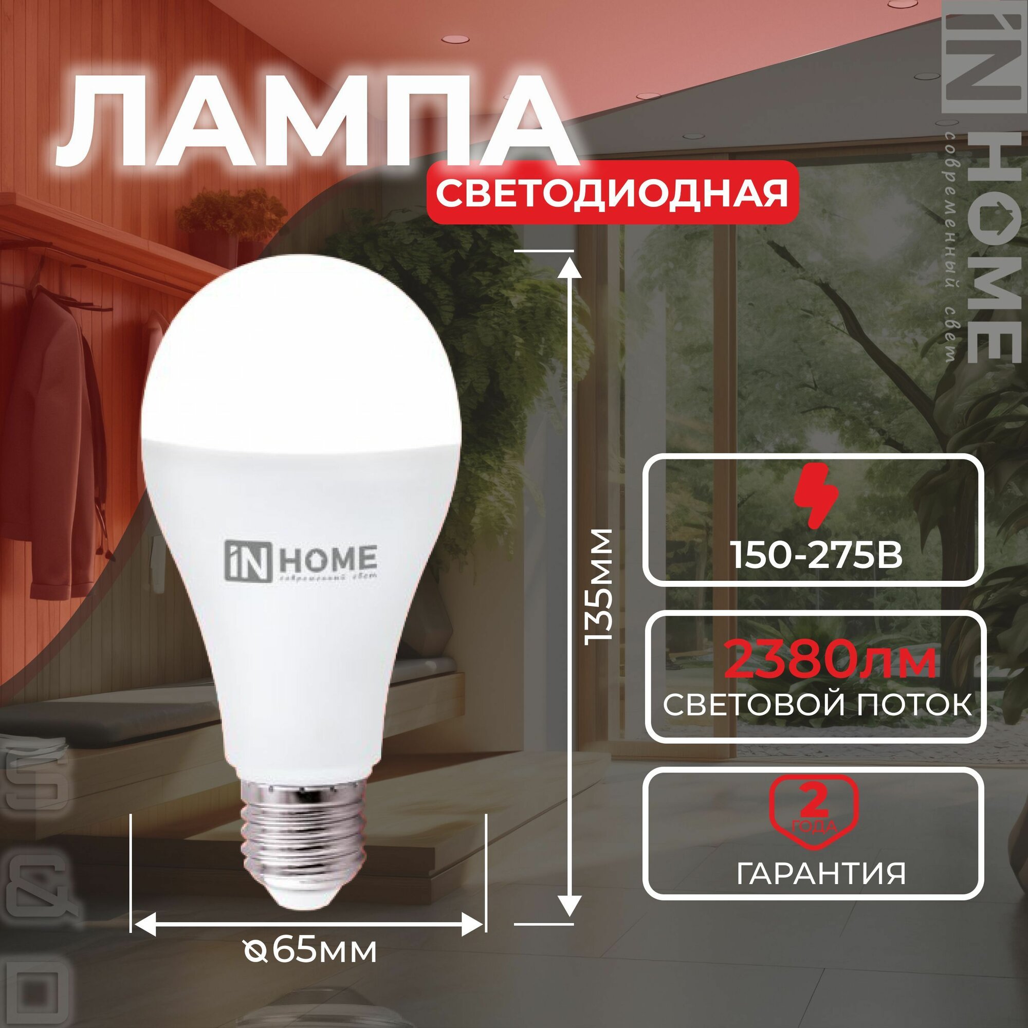 Лампа светодиодная IN HOME LED-A60-VC, Е27, 20 Вт, 230 В, 3000 К, 1900 Лм