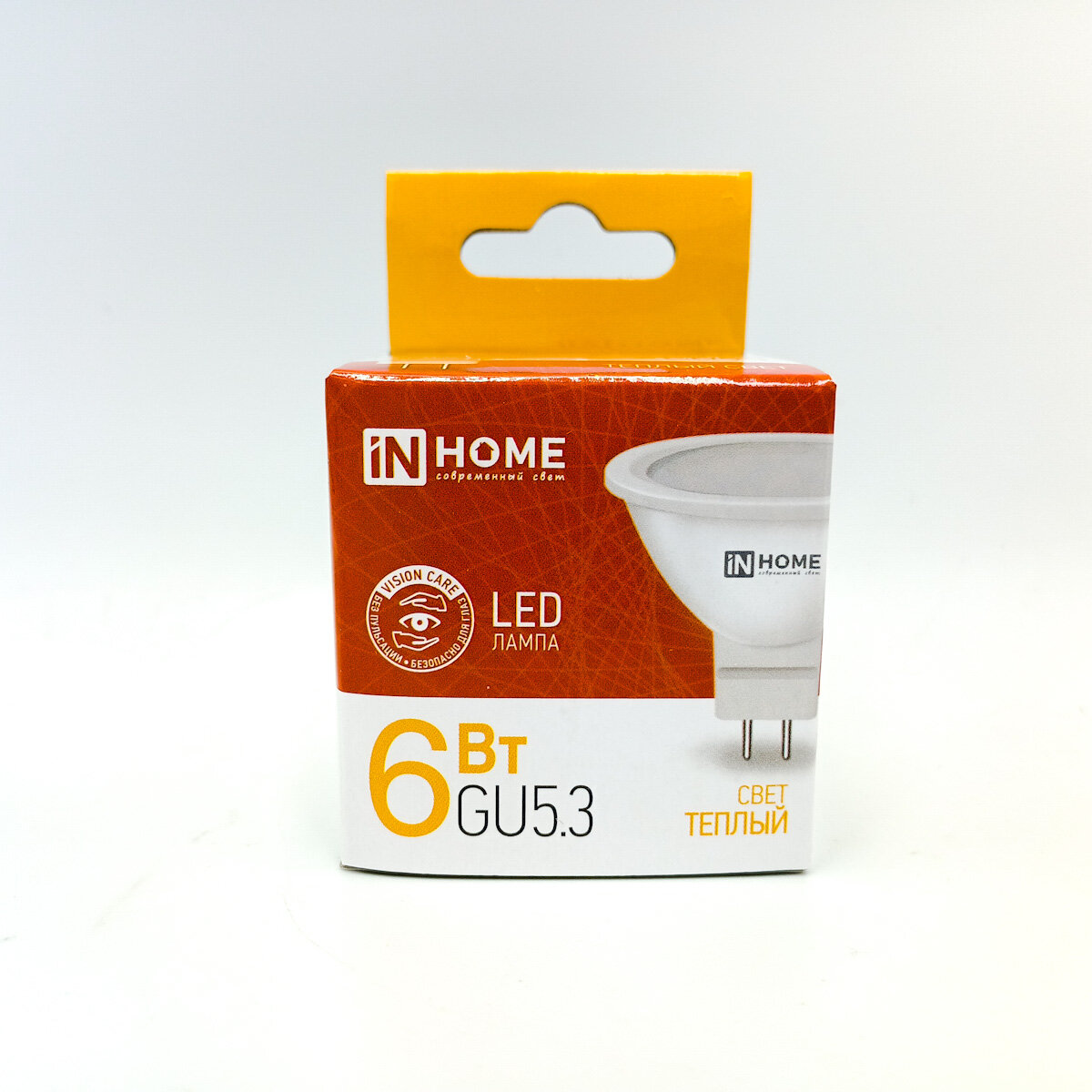 (6 шт.) Светодиодная лампочка IN HOME JCDR, мощность 6 Вт, напряжение питания 220 В, цветовая температура 3000К, теплый белый свет, цоколь GU5.3, размер 50х51 мм