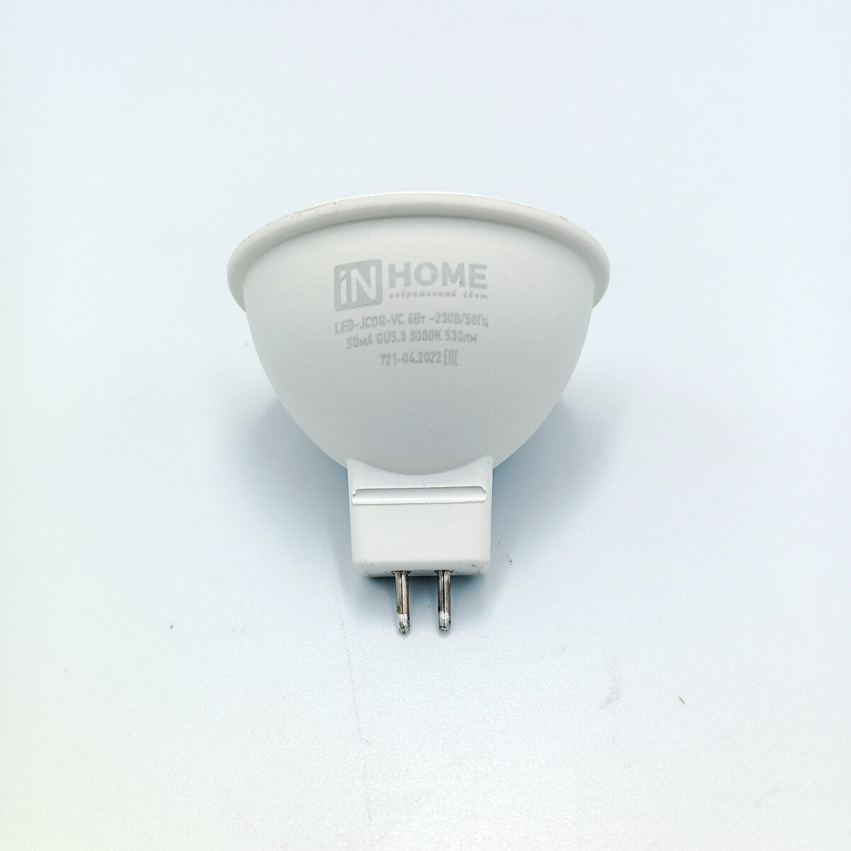 (6 шт.) Светодиодная лампочка IN HOME JCDR, мощность 6 Вт, напряжение питания 220 В, цветовая температура 3000К, теплый белый свет, цоколь GU5.3, размер 50х51 мм