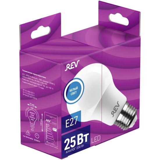 Лампочка светодиодная Rev груша, A60, 25Вт, E27, 4000K, 2000Лм, 32533 8 интересное: