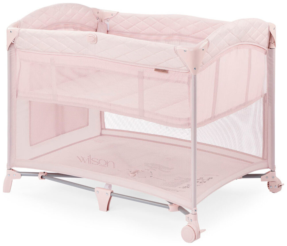 Манеж детский складной Happy Baby WILSON, манеж кровать для новорожденных с колёсами, регулировка высоты, сумка-чехол в комплекте, розовый