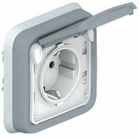 Розетка одинарная 1 м c заземлением с крышкой Plexo серый IP55 встроенный монтаж (Legrand), арт. 069833