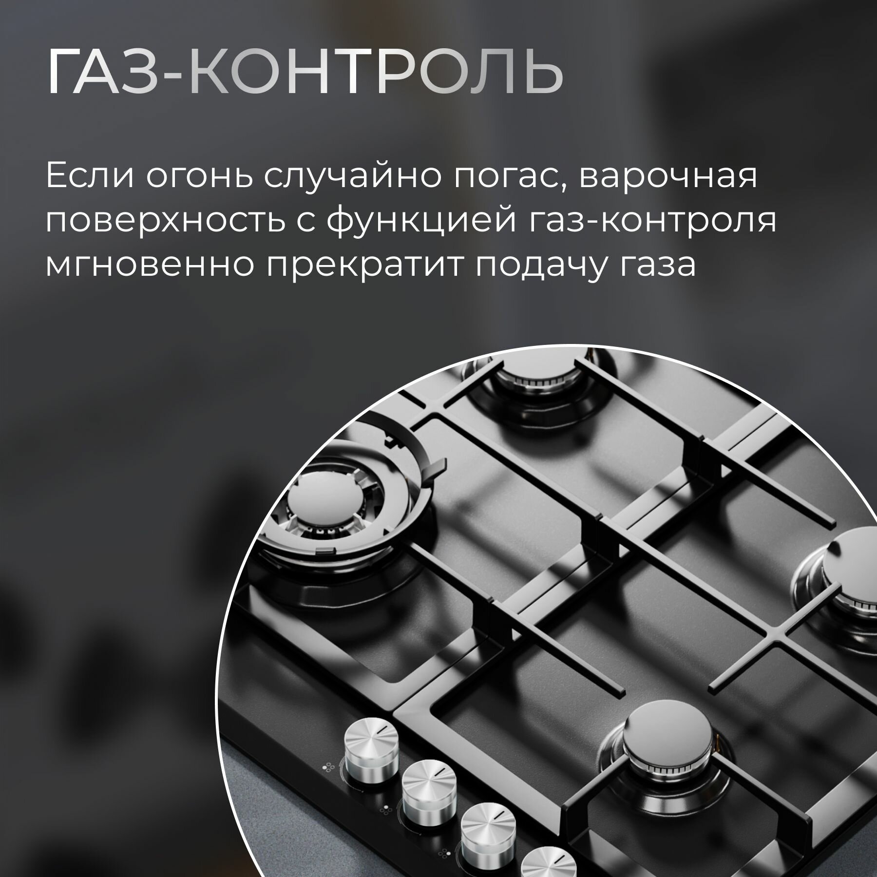 Газовая встраиваемая варочная панель 60 см KURO KHG 641 BL, газ-контроль, электроподжиг, WOK-конфорка, чугунные решетки, черный интересное: