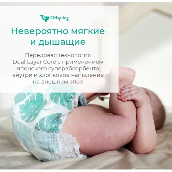 Offspring подгузники, XL 12+ кг. 30 шт. расцветка Авокадо