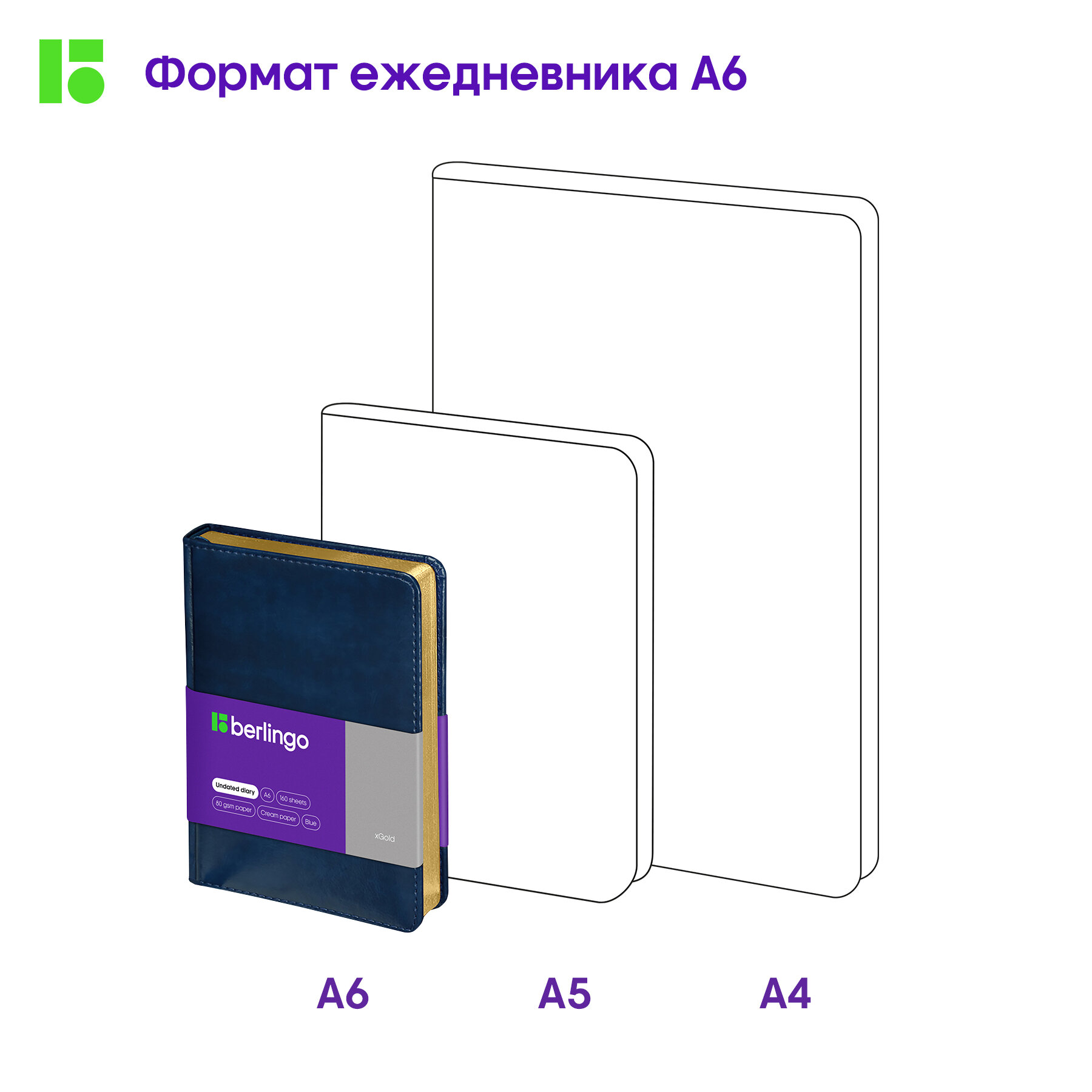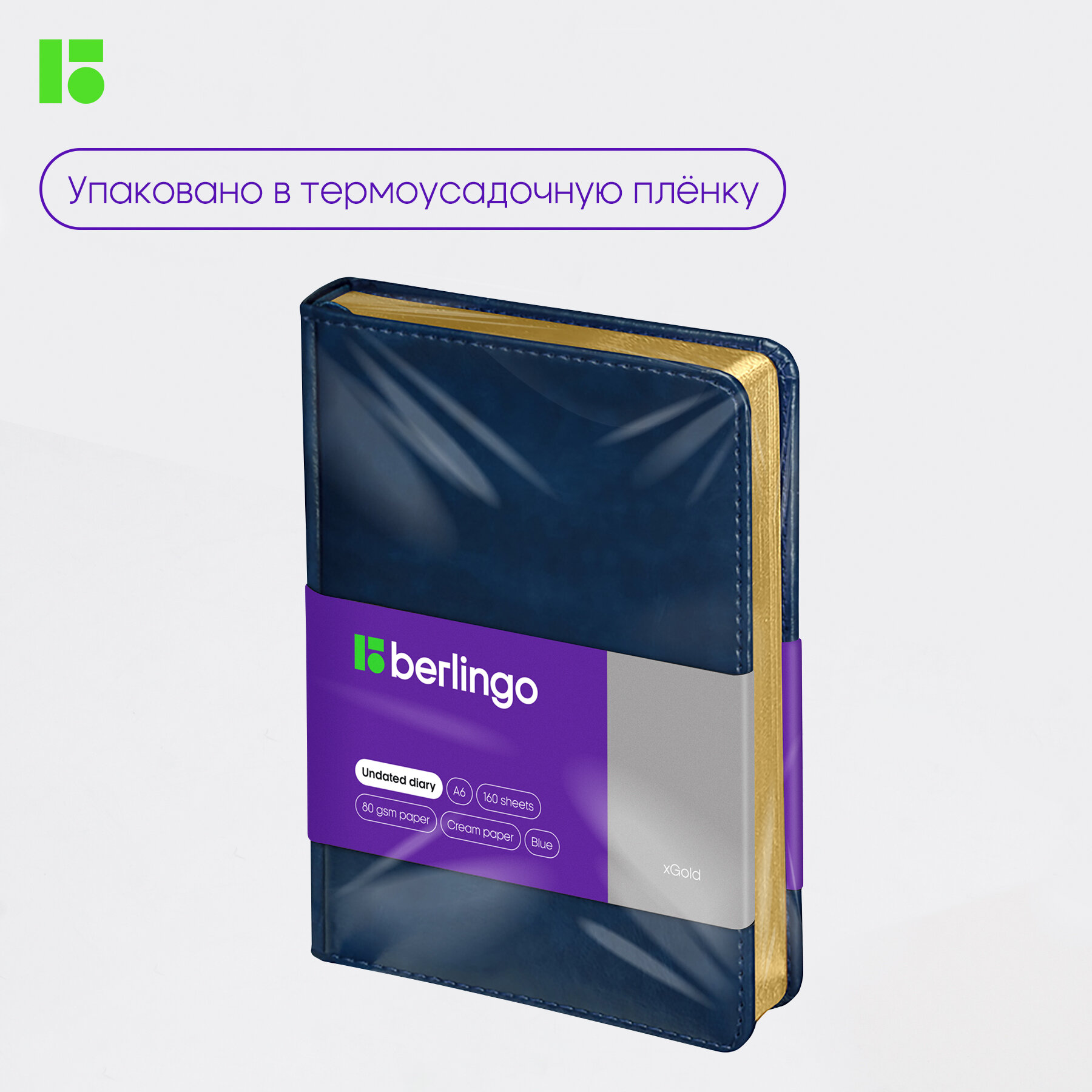 Ежедневник недатированный Berlingo A6, 160 л, кожзам, "xGold", золотой срез, синий (UD0_81601)