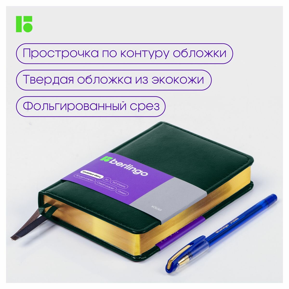 Ежедневник недатированный Berlingo "xGold" зеленый, A6, 160 листов, обложка экокожа, золотой срез
