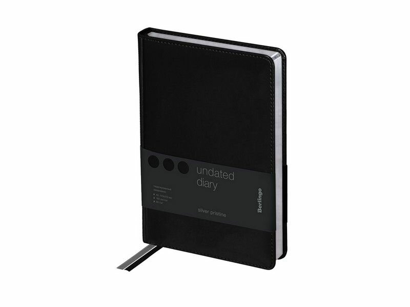 Ежедневник недатированный А5, 160 листов, Berlingo "Silver Pristine". Блокнот/ планер/ записная книжка в линейку, под кожу, серебряный срез, черный, в подарок