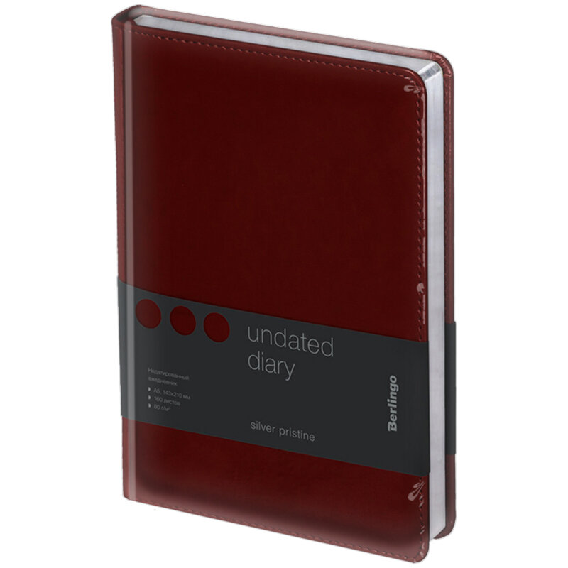 Ежедневник недатированный Berlingo A5, 160 листов, кожзам, "Silver Pristine", серебряный срез, красный (UD0_82502)