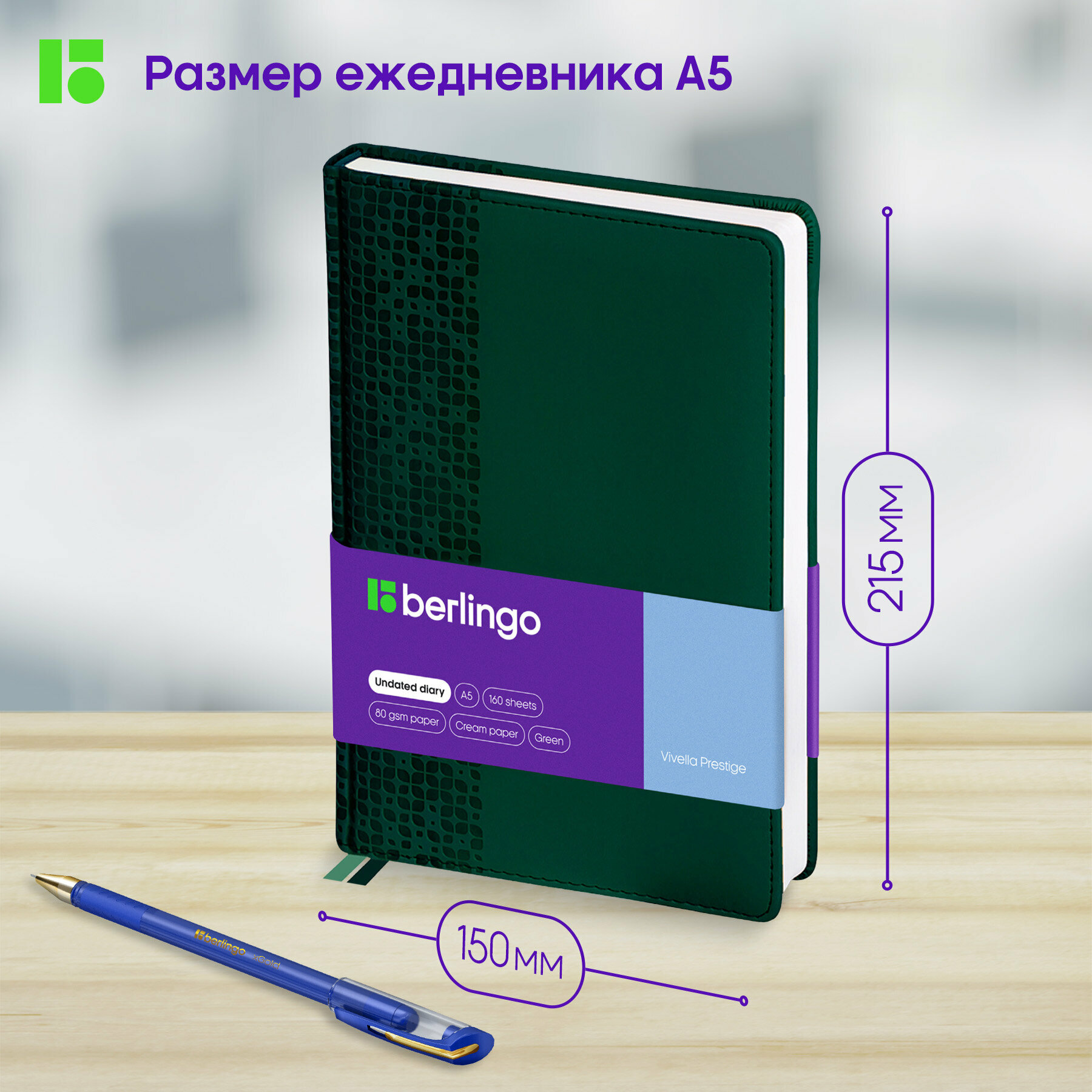 Ежедневник недатированный Berlingo A5, 160 листов, кожзам, "Vivella Prestige", зеленый (UD0_80505)