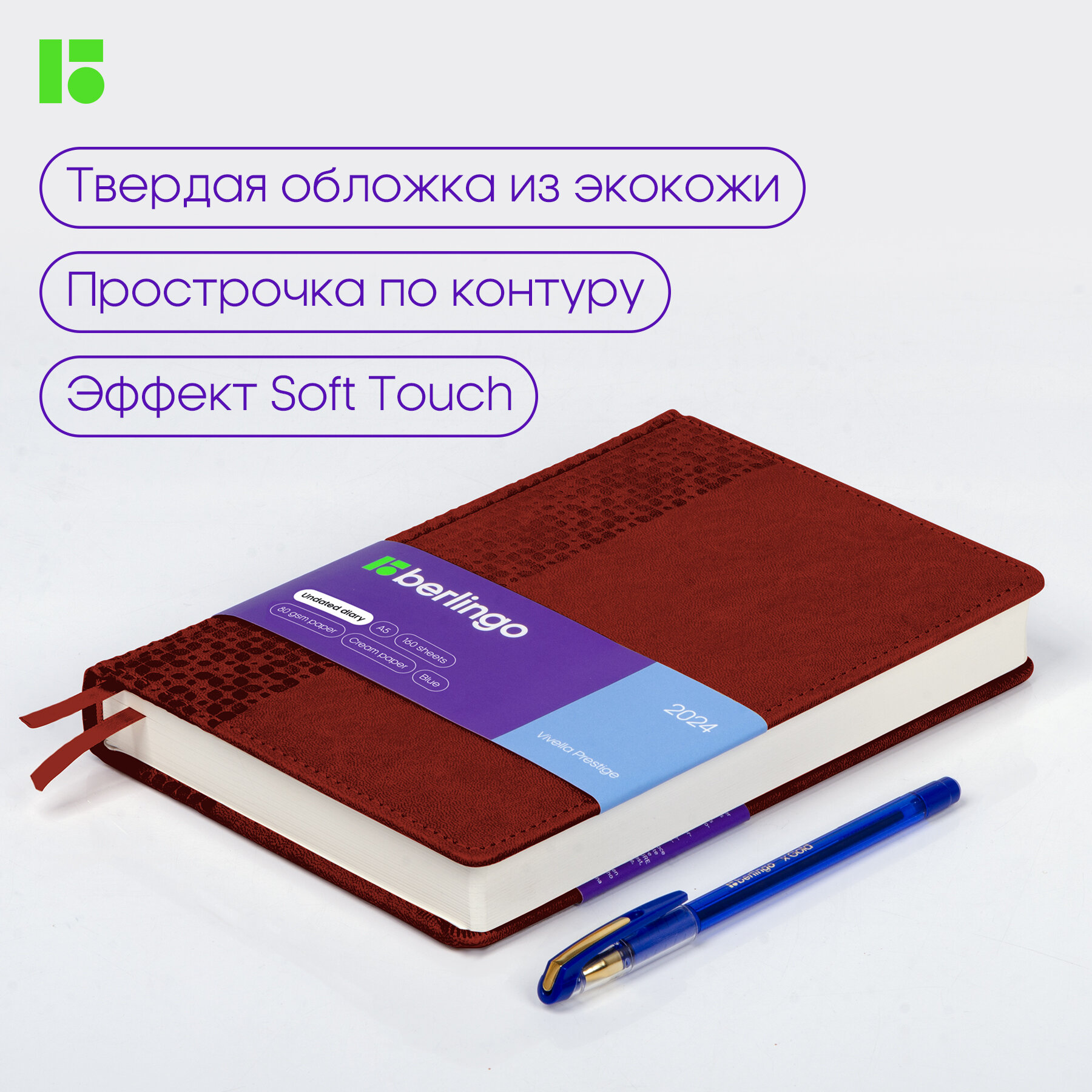 Ежедневник недатированный A5 160 листов, кожзам, Berlingo "Vivella Prestige", бордовый