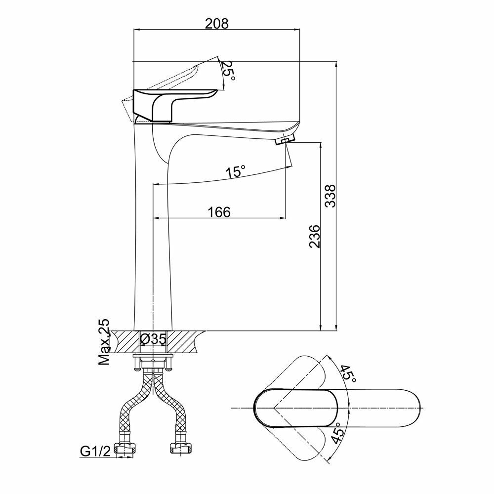 | Угол поворота рукоятки вертик. | 25 градусов |