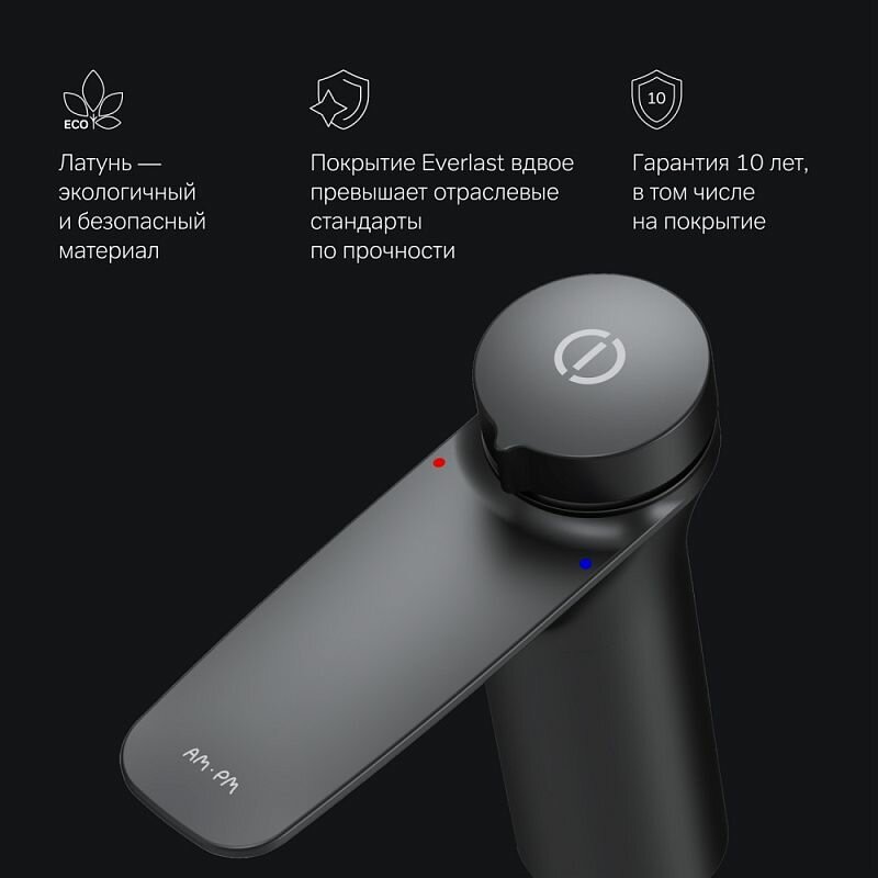 Смеситель для раковины в ванную AM.PM X-Joy TouchReel F85A02522 черный, включение нажатием, аэратор, 10 лет гарантии