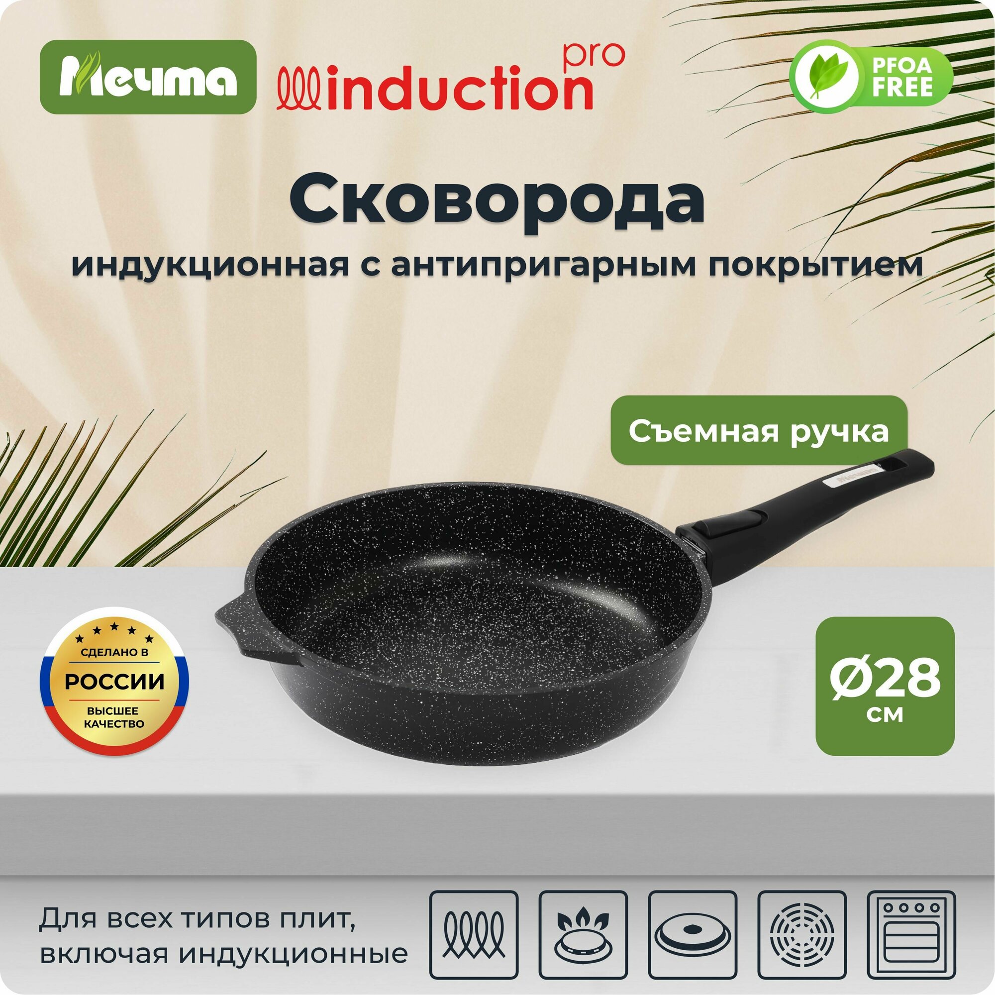 Купить Сковорода индукционная "Мечта" 28 см Гранит Induction Pro с антипригарным покрытием со съемной ручкой BLACK, подходит для индукции и посудомоечной машины