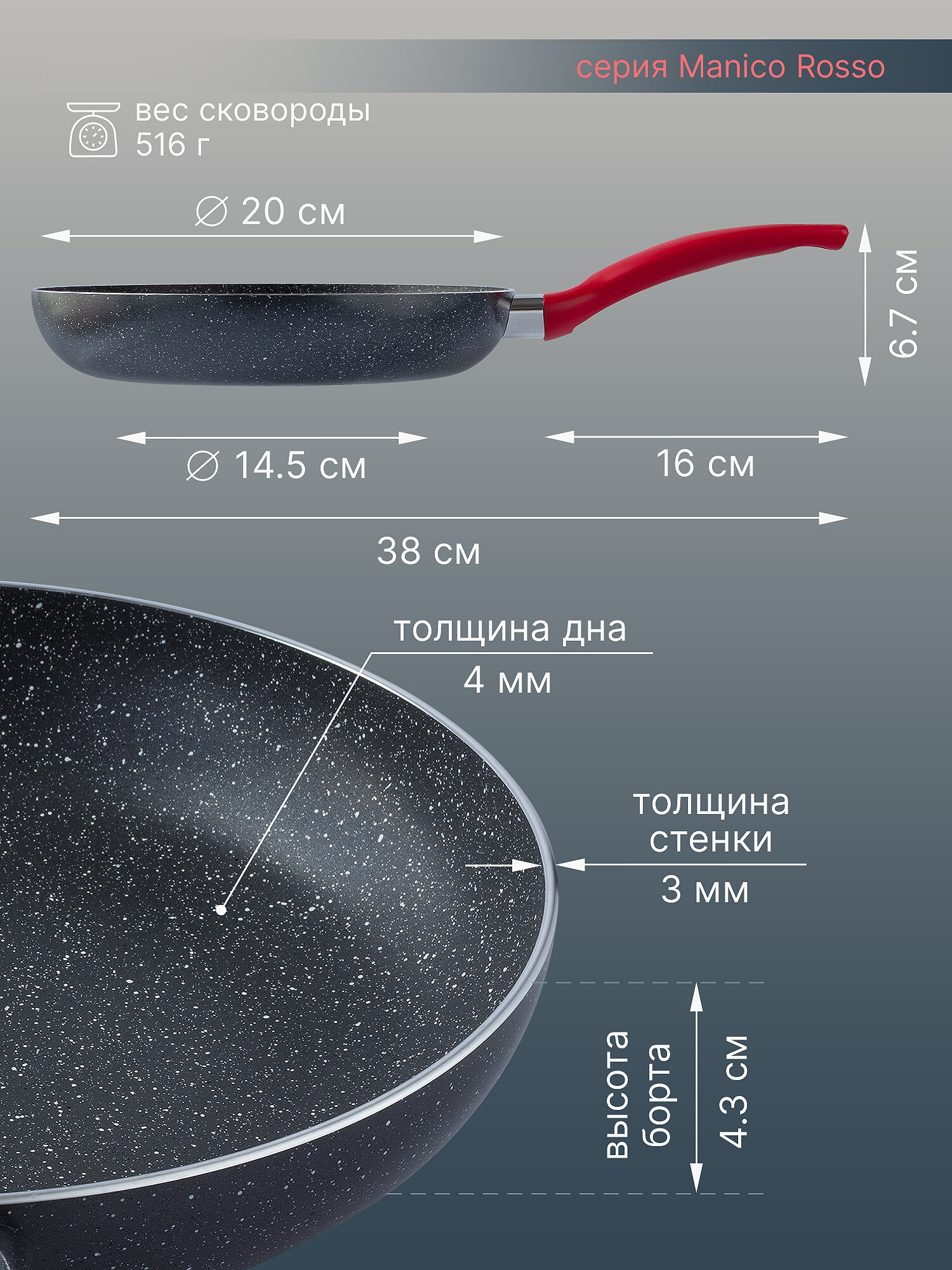 Сковорода Tescoma Manico Rosso 597820, диаметр 20 см, 20х20 см