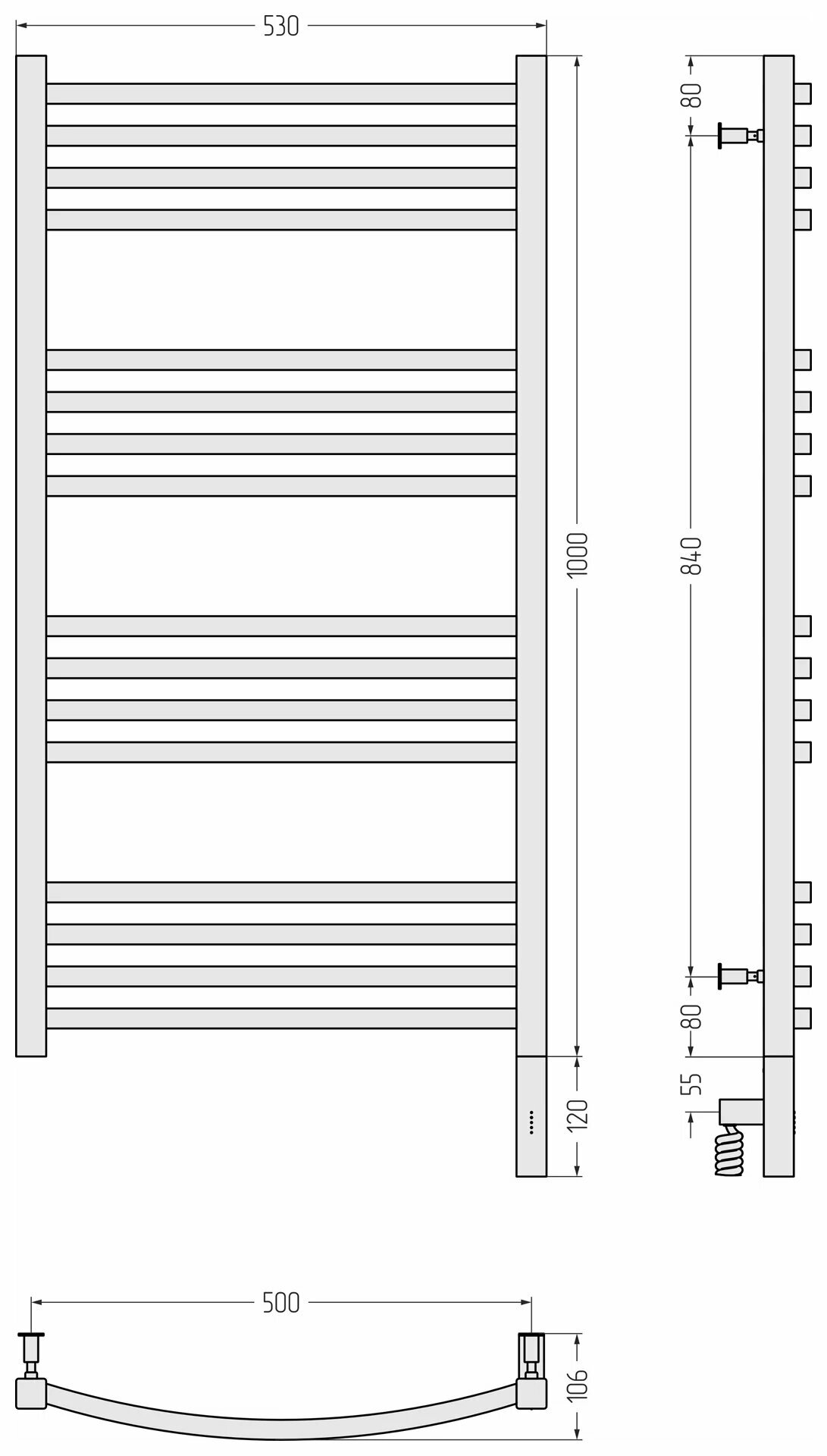 Полотенцесушитель электрический Сунержа Аркус 3.0 1000х500 МЭМ правый Без покрытия 00-5705-1050