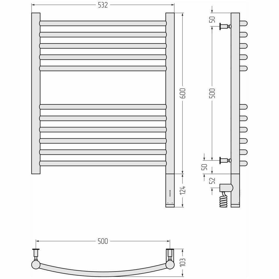 Полотенцесушитель электрический Сунержа 00-5803-6050 Богема 3.0 Полотенцесушитель электрический РЭБ выгнутая, 600х500 мм/ МЭМ правый, без покрытия