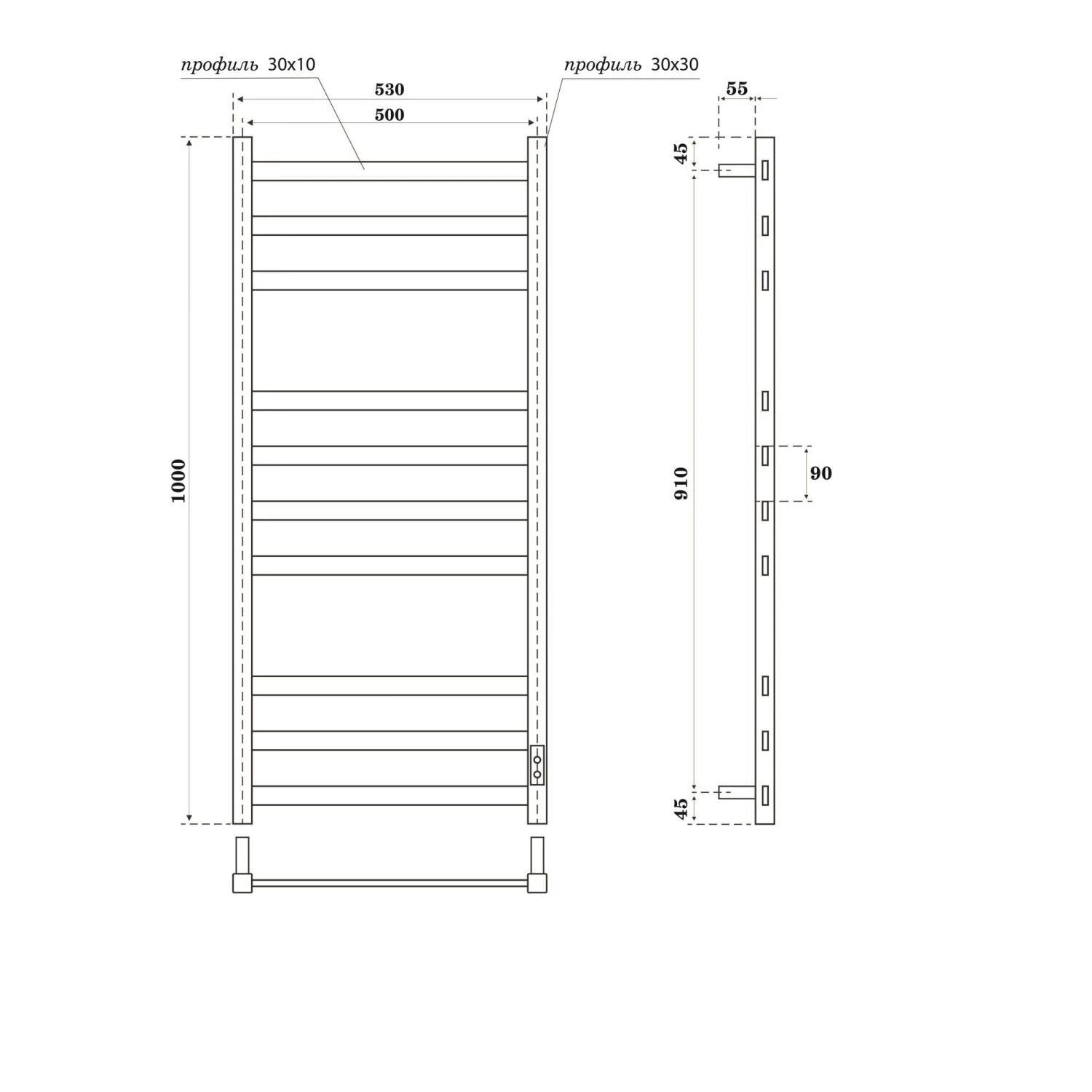 Полотенцесушитель электрический 500x1000 POINT Аврора (PN10850B П10) диммер справа, черный