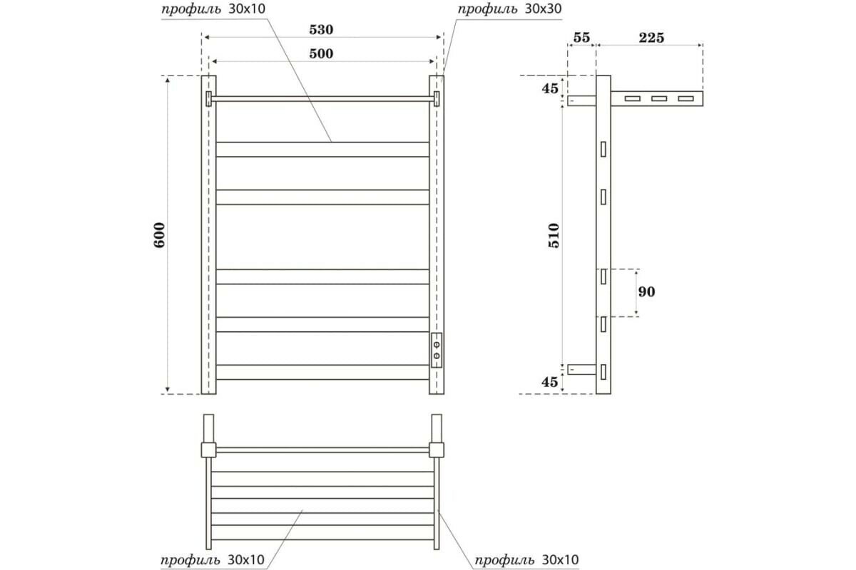 Электрический полотенцесушитель Point Серии Меркурий П8 500x800 диммер справа, хром PN83858