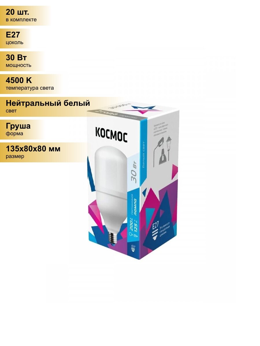 Купить (20 шт.) Светодиодная лампочка космос ЛОН A80 высокомощ E27 30W 2650lm 4500K 4K мат. 135x80 LksmHWLED30WE2745 Нейтральный белый. Цоколь E27