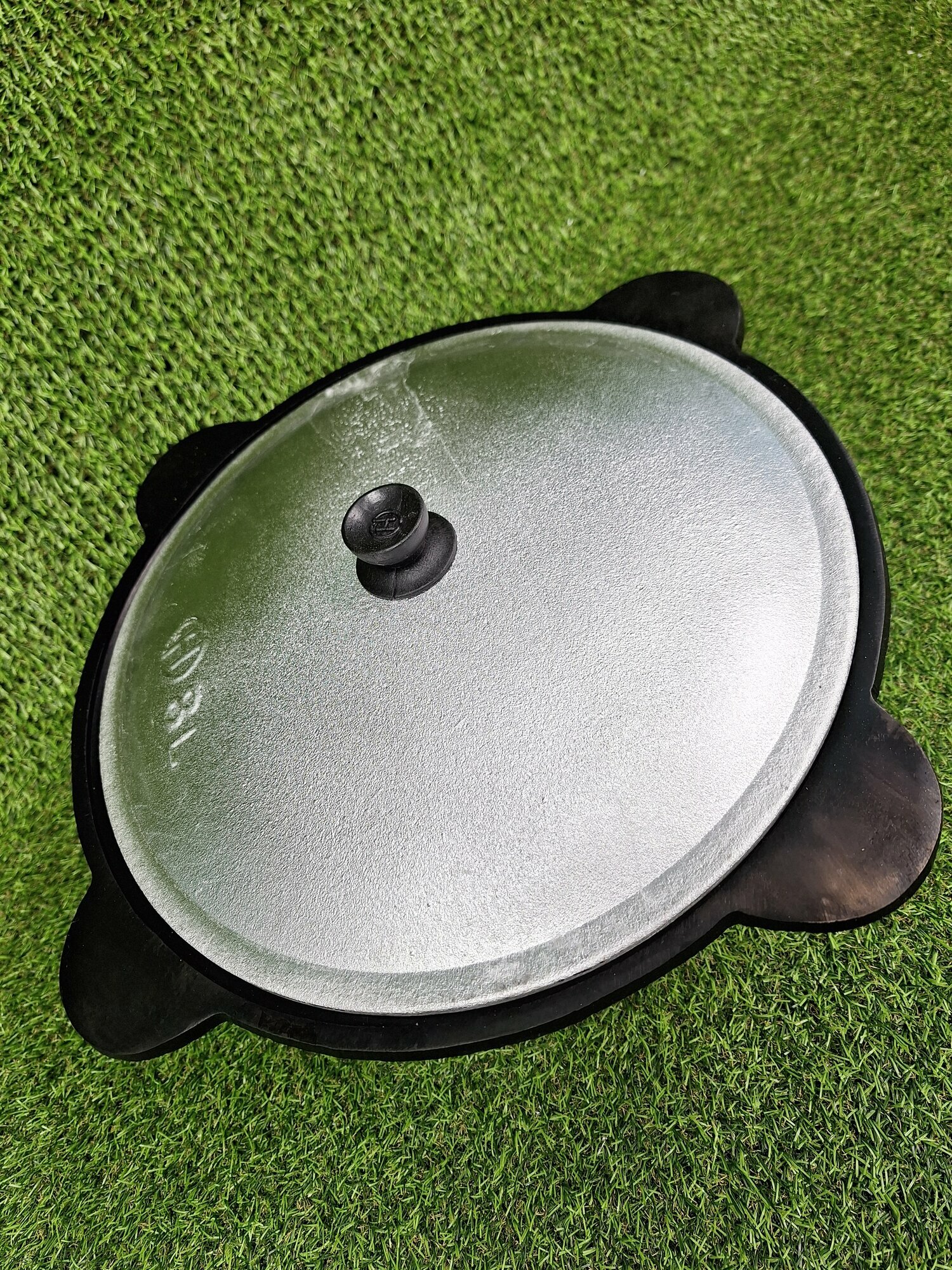 Казан узбекский, чугунный, 16 литров (плоское дно), с алюминиевой крышкой