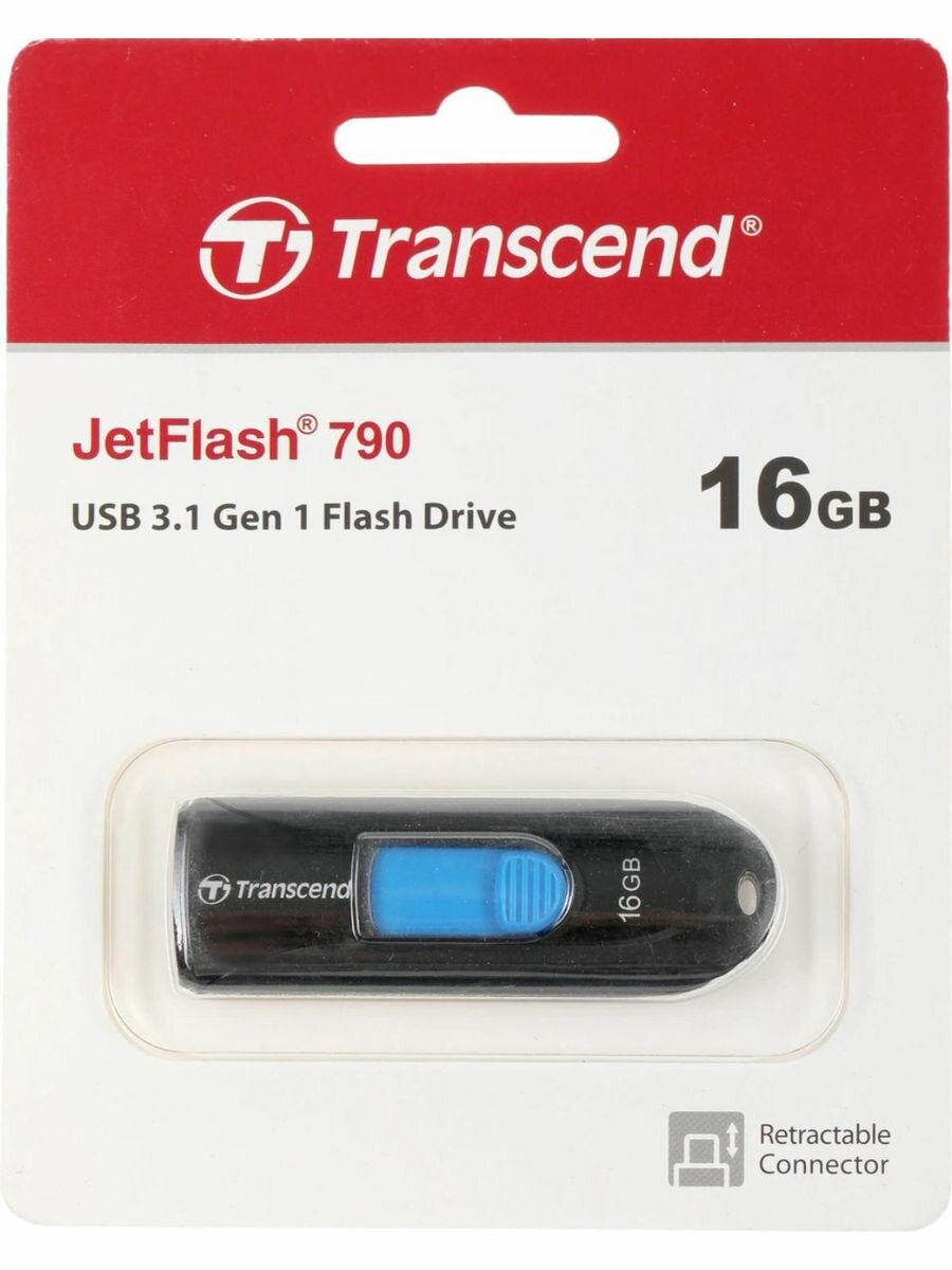Флешка Transcend JetFlash 790 16 ГБ, 1 шт., черный/синий