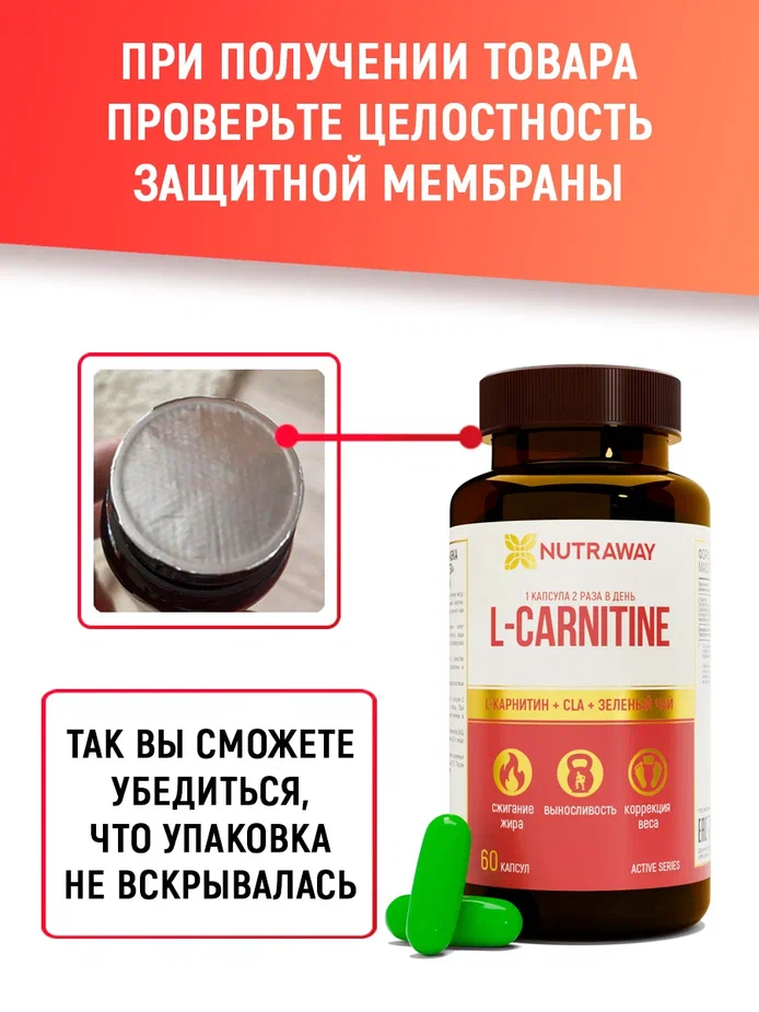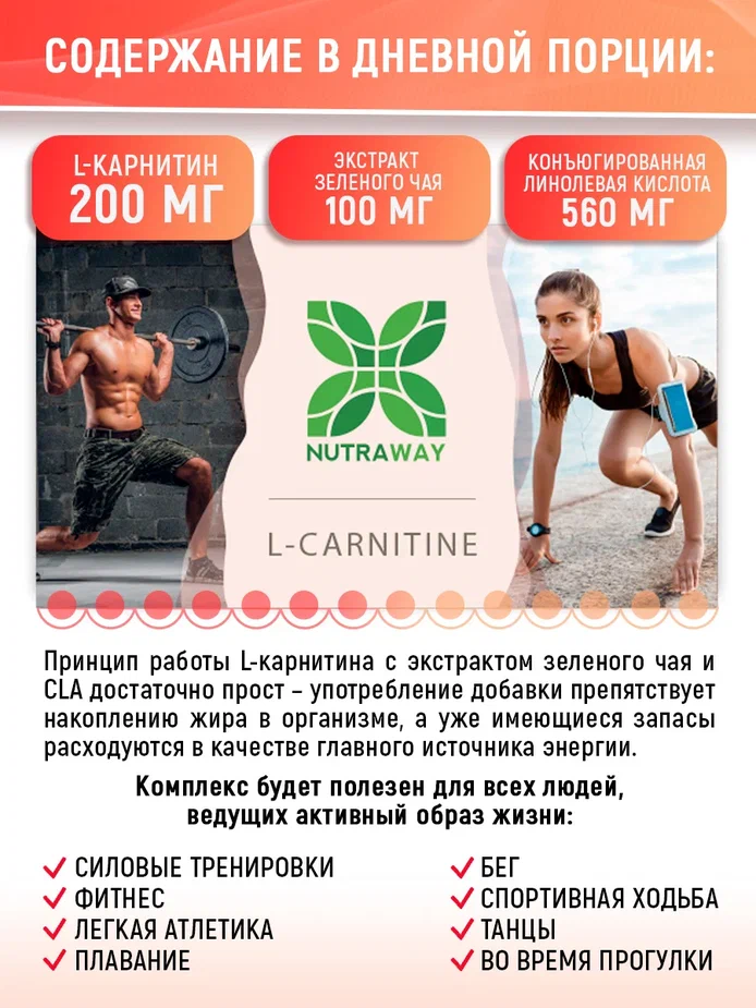 Комплекс для похудения Nutraway L-Карнитин +CLA+экстракт зеленого чая 60 капсул интересное: