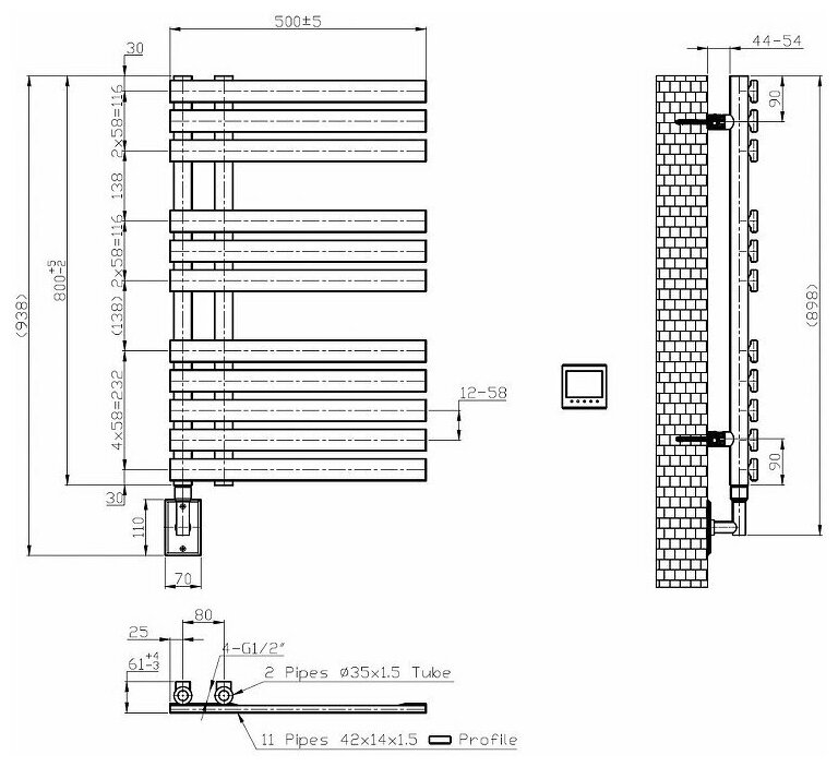 Водяной полотенцесушитель Energy Ideal 800x500