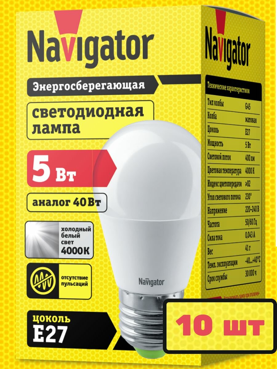 Лампа светодиодная 94 479 NLL-P-G45-5-230-4K-E27 | код. 94479 | Navigator (5шт. в упак.)