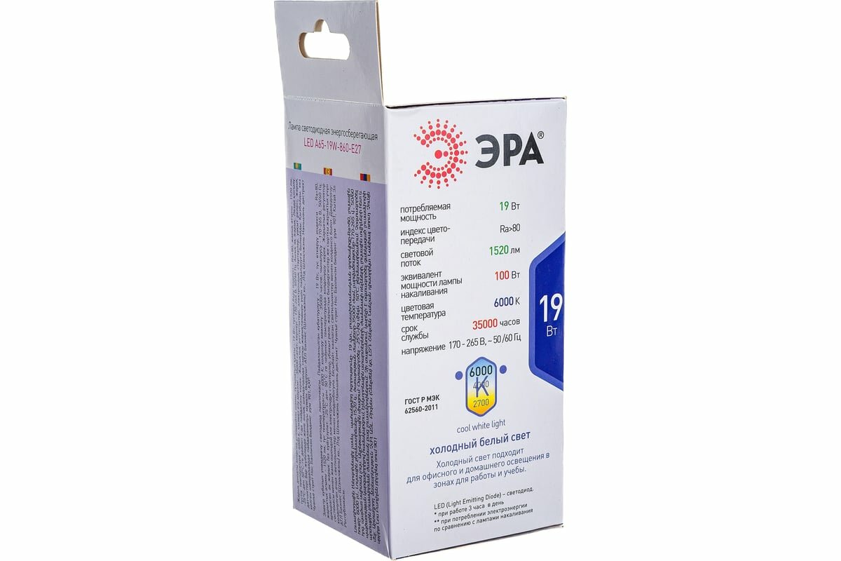 Светодиодная лампа ЭРА LED A65-19W-860-E27 10/100/1200
