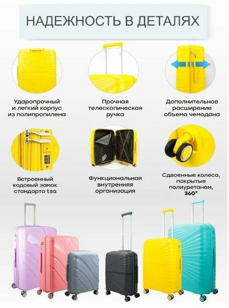 | Плюсы: | Чемодан подходит в ручную кладь в большинство авиакомпаний