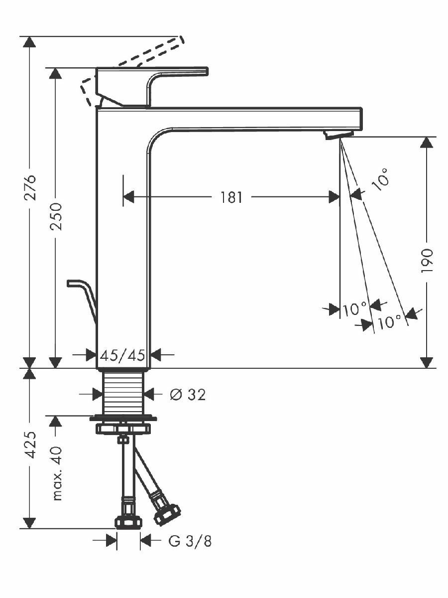 Vernis Shape Смеситель для раковины однорычажный 190 со сливным гарнитуром, 71562000