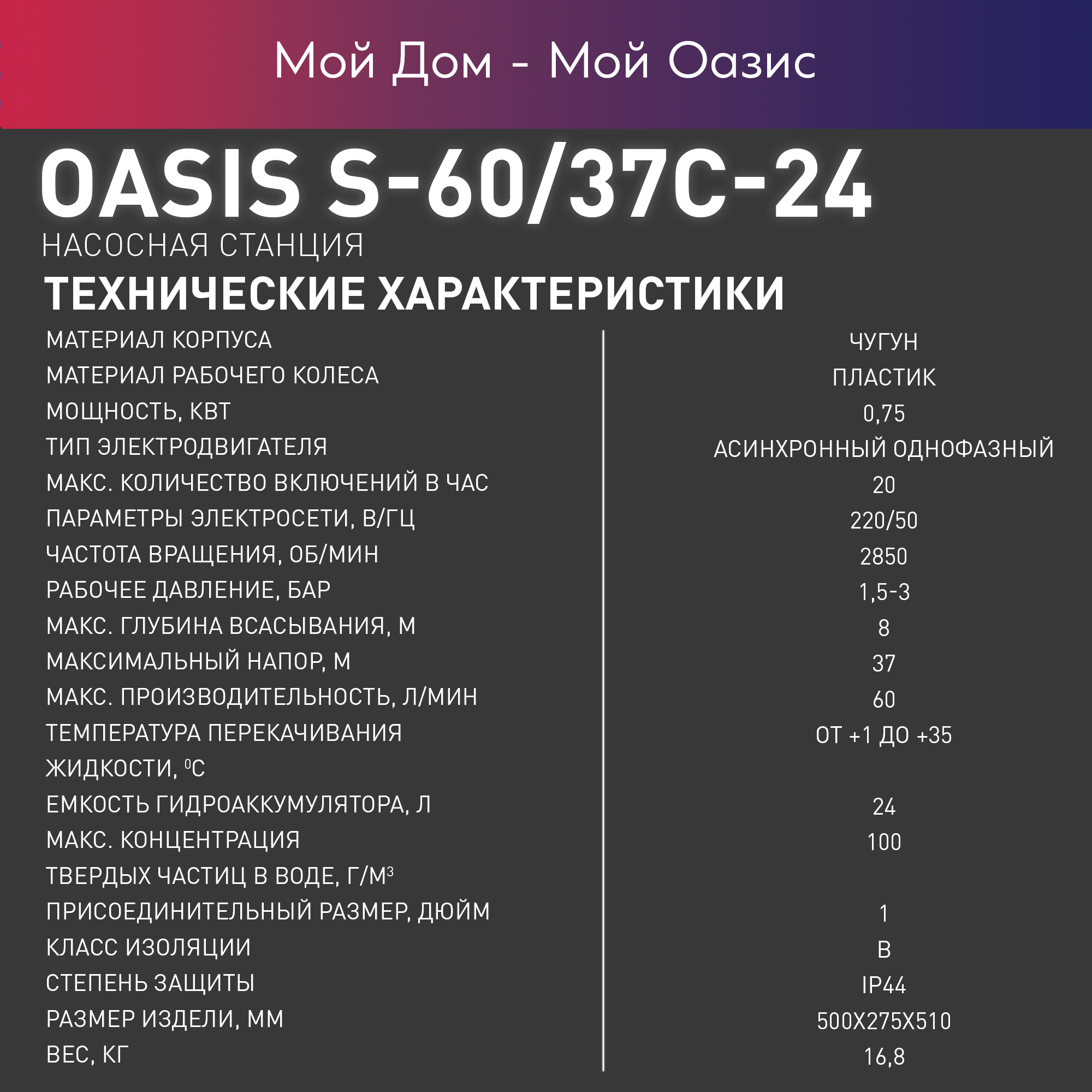 Oasis Автоматическая насосная станция 60/37C 24 4670004376607 .