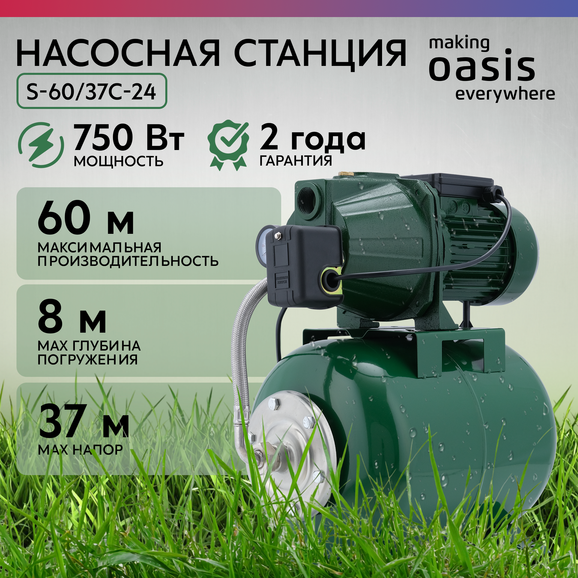 Купить Насосная станция Оasis для дома, модель S 60/37С-24, 600 Вт, 60 л/мин, напор 37 м, бак 24 л, для воды, насос водяной поверхностный