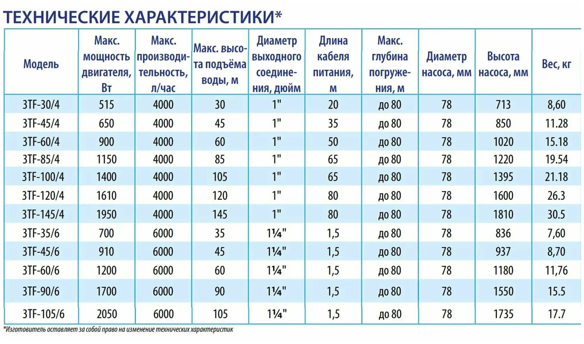 Скважинный центробежный насос Belamos (Беламос) 3TF-145/4 67л/мин, Н-145 м, Ø-3", каб.80 м интересное: