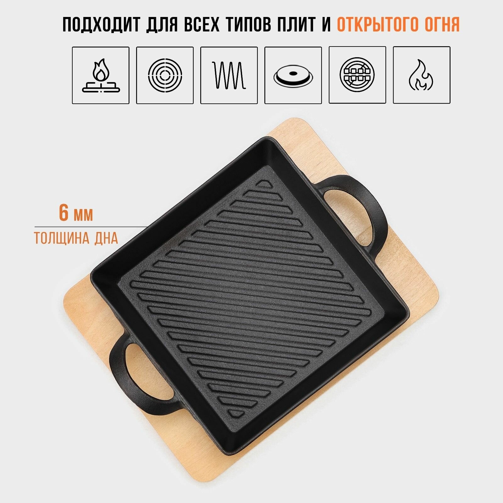 СохранитьСковорода-гриль Magma Осан , 24 18 4 см, на деревянной подставке, чугун, чёрная интересное: