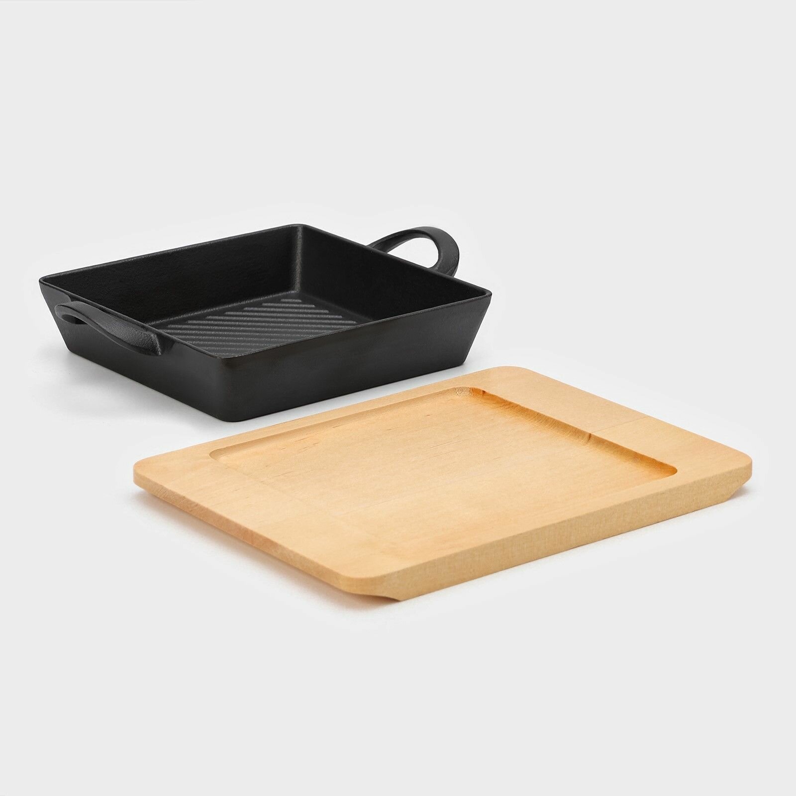 Купить Сковорода-гриль Magma Осан , 24 18 4 см, на деревянной подставке, чугун, чёрная