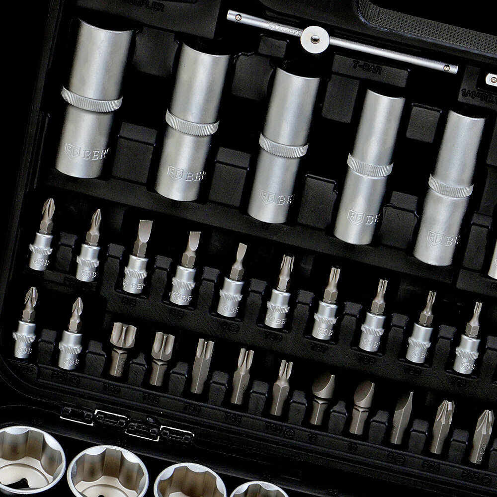 Набор инструментов BERGER BG108-1214, 108 предметов 1/2" -1/4", кейс с металлическими замками и усиленными петлями