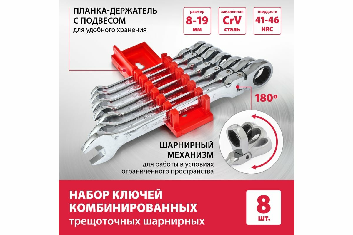 Набор Ключей Комбинированных, Трещоточных Шарнирных 8шт.// Matrix Matrix арт. 14898