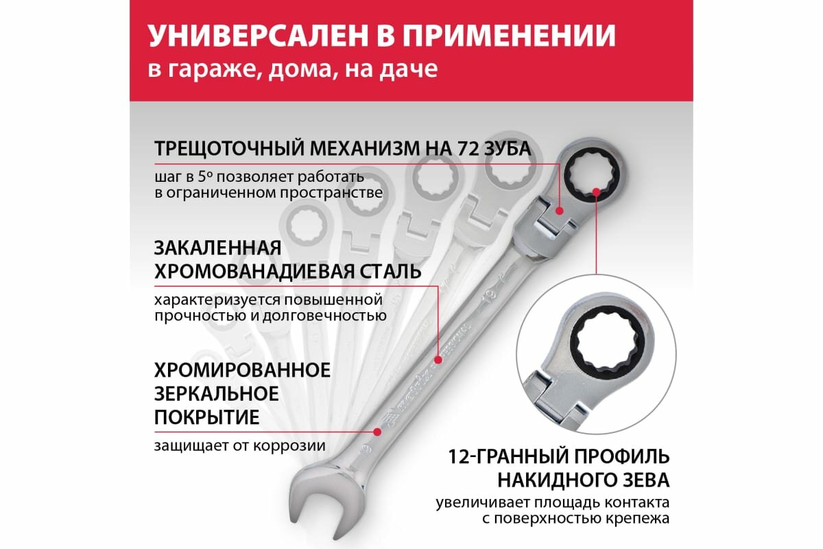 СохранитьMATRIX Набор ключей комбинированных, трещоточных шарнирных 8шт 14898 интересное: