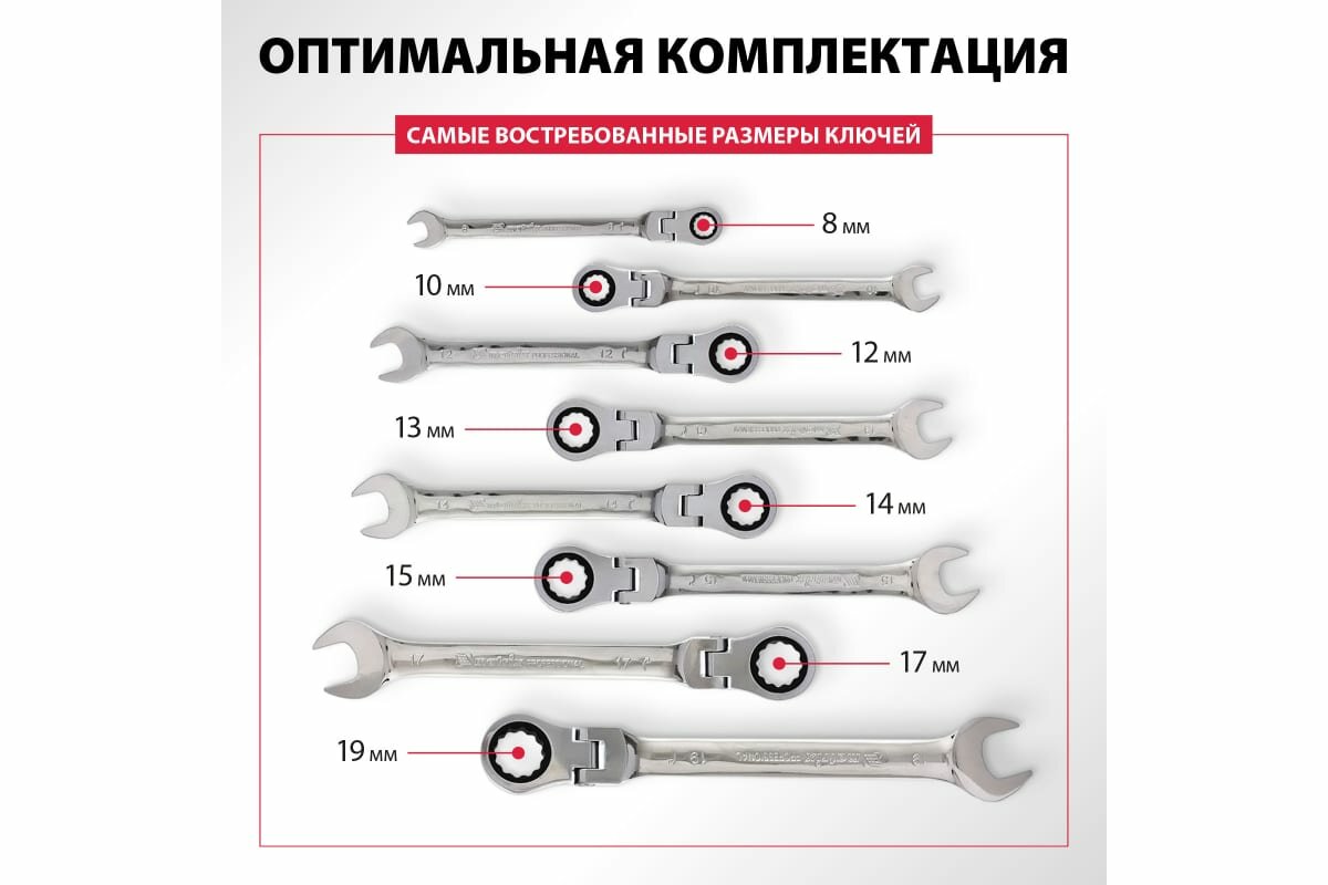 Набор комбинированных трещоточных шарнирных ключей MATRIX 8шт 14898
