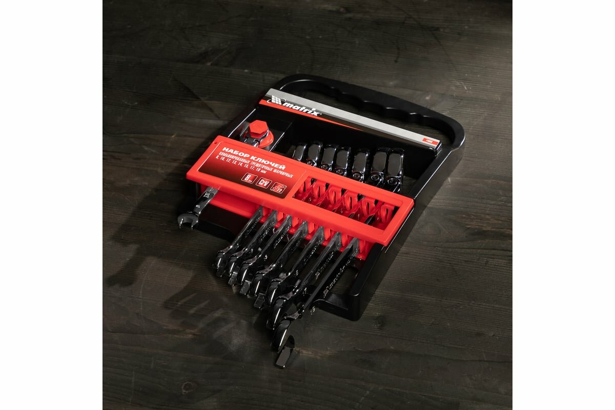 Набор ключей комбинированных, трещеточных шарнирных 8 шт Matrix