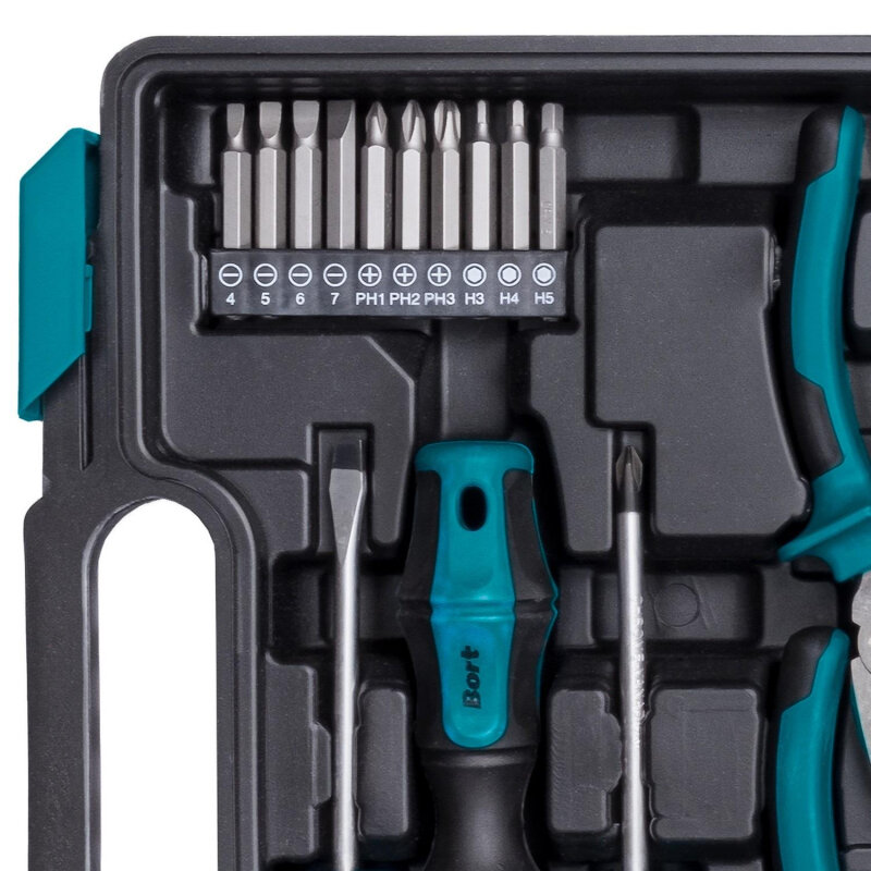 СохранитьНабор инструмента универсальный Bort BTK-19 интересное: